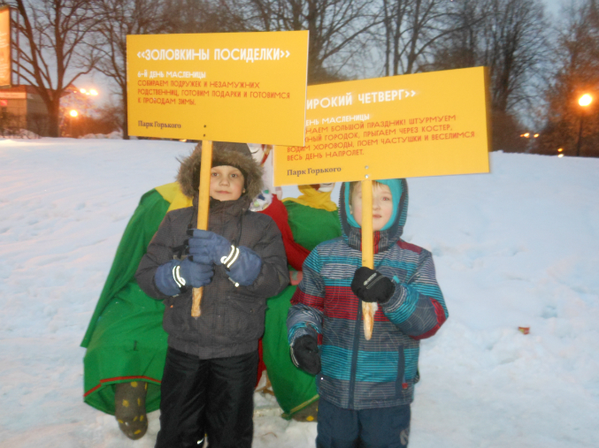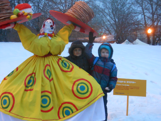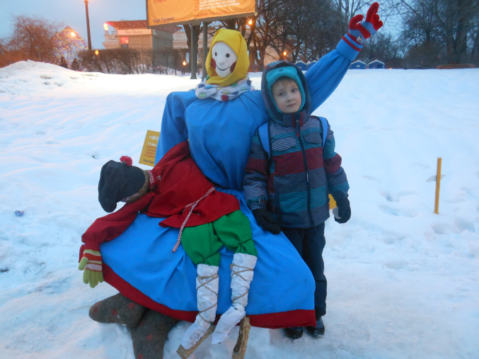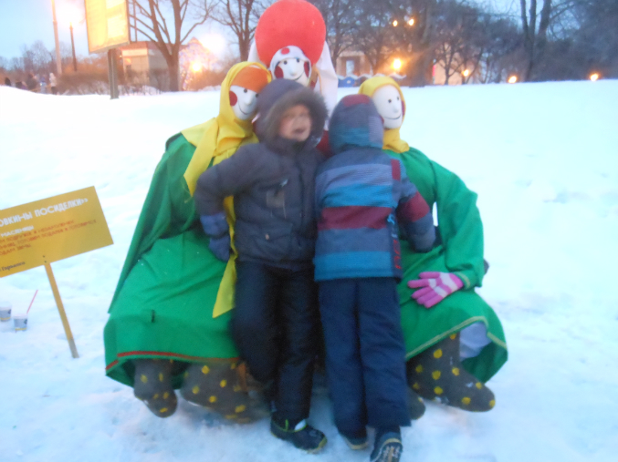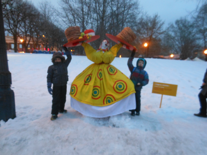 Практически "доплыв" до парка (все по телевизору видели что в Москве происходит?), ринулись рассматривать Масленицы и позировать с забавными персонажами.