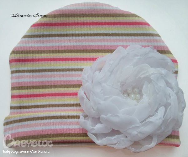 Последние заказы шапочно-цветочные) Полосатая и бело-шоколадная шапочки двухслойные, р-р 46-50, можно носить или с отворотом, или удлиненный вариант. Розовая шапочка однослойная, на теплую погодку. Цветочки съемные.
