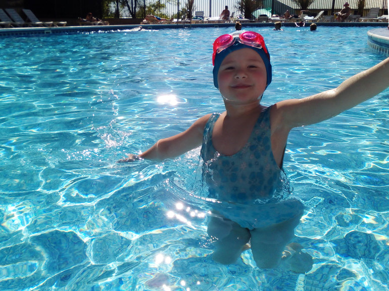Воду Алиса любит как и прежде. По сему по пробуем ходить в бассейн. В Аквапарке Н2О есть группы для детей от 3 до 5 лет, сходили уже 2 раза, ей очень нравится, жаль только на занятия не пускают родителей - а очень хочется одним глазком посмотреть что они там делают. Тренер говорит, что Алиса ведет себя хорошо и плавает "самостоятельно". Ну разумеется они им там что-то цепляют - какие-то поплавки.