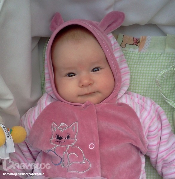 На сегодняшний день, в 4 месяца, Алиса весит 6800 при росте 62 см, а выглядим мы вот так: