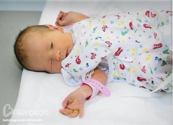 Детка моя родилась маленькая и худенькая 2900 а к моменту выписки из роддома еще схуднула до 2650 - ну абсолютно не хотела кушать видимо была очень слабенькой и даже глаза не открывала - только на 3-ий или 4-ый день нехотя стала поглядывать на меня одним глазом, такими нас и выписали: