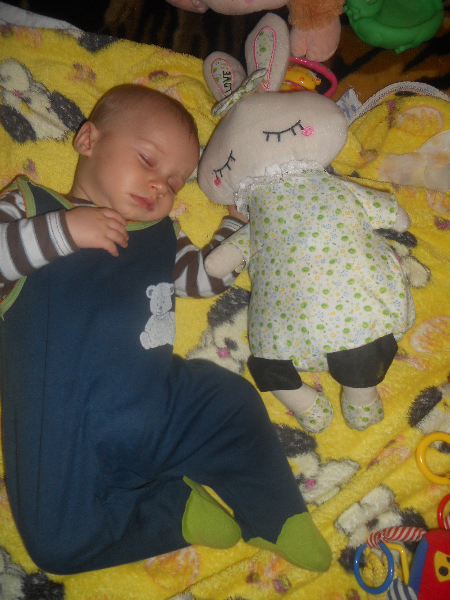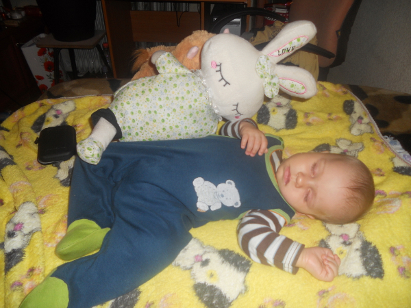 А сегодня присоединились сопельки и кашель. Но кашель, насколько я понимаю, из-за того что сопли попадают в горло, потому что кашляет когда лежит, а когда ношу столбиком или присаживаю перестает.