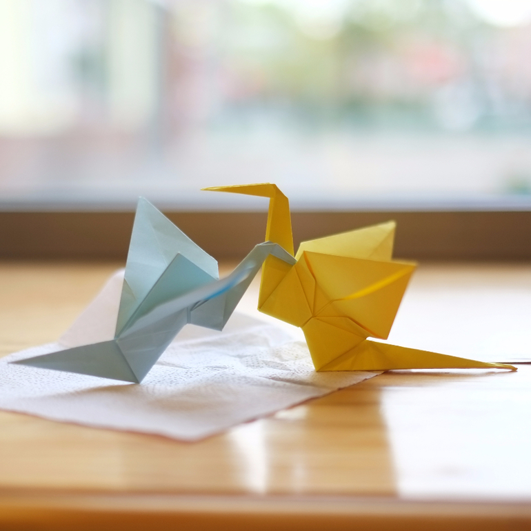 Журавлики) Я помню, нам в школе рассказывали, как для одной больной девочки надо было сделать много журавликов... И все складывали журавликов и не успели....