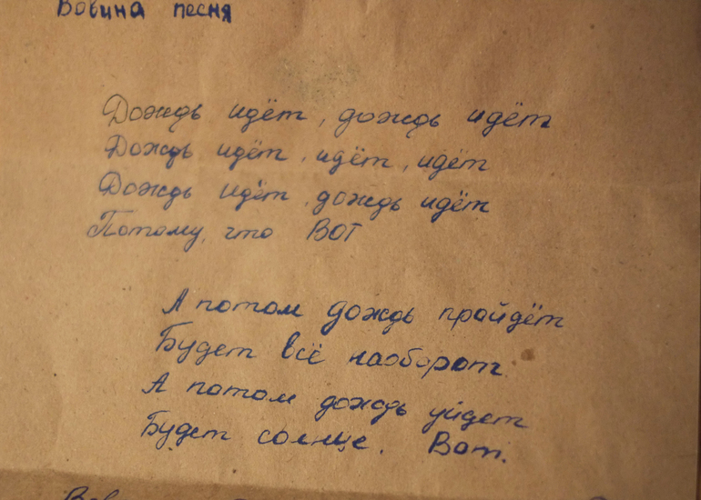 Мы сегодня гуляли под дождём (это наши, оказывается, самые любимые прогулки на свете), и Вова придумал песенку.