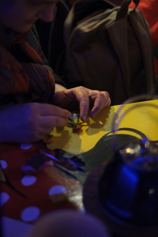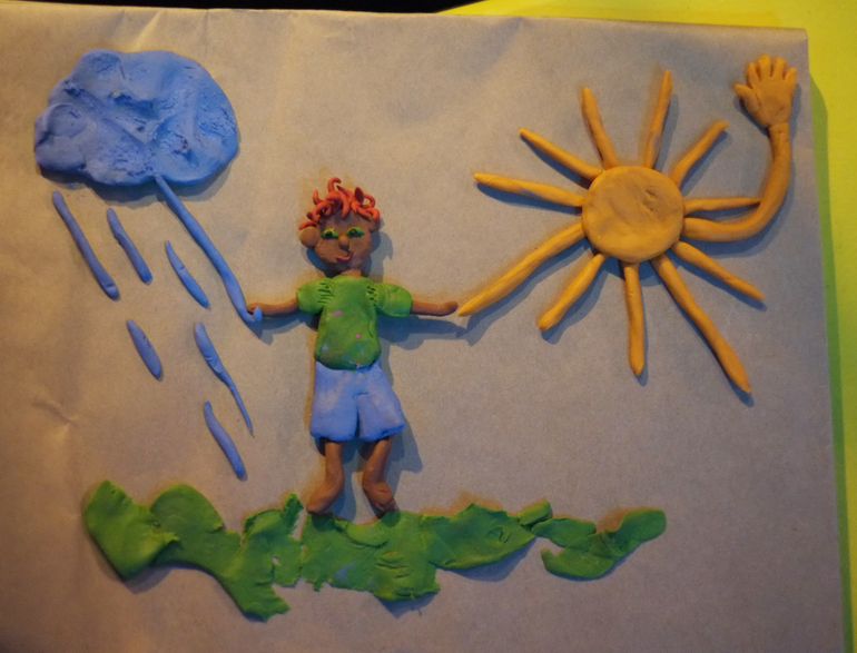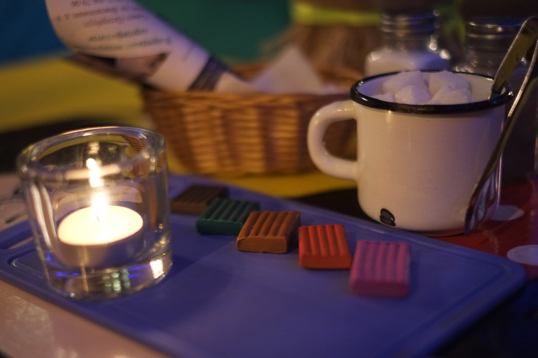 А потом мы мокрые и замерзшие случайно забрели в какое-то пластилиновое кафе, там в самом деле всё-всё было из пластилина: стены, двери, некоторые окна.