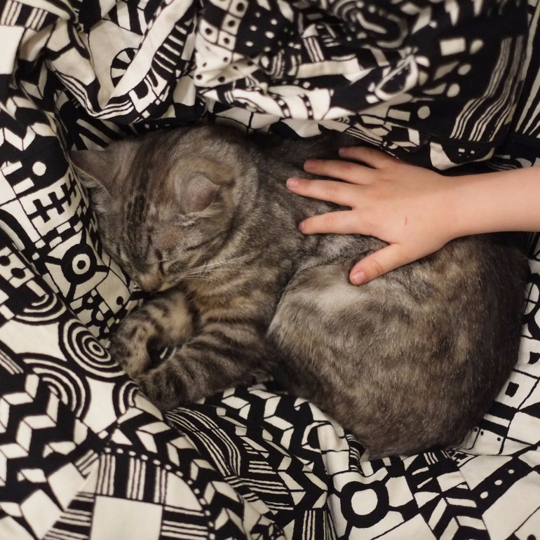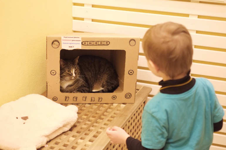 Вова счастлив. Сегодняшний день, по детской заявке, получился ничуть не хуже вчерашнего - с новыми стихами и котами.