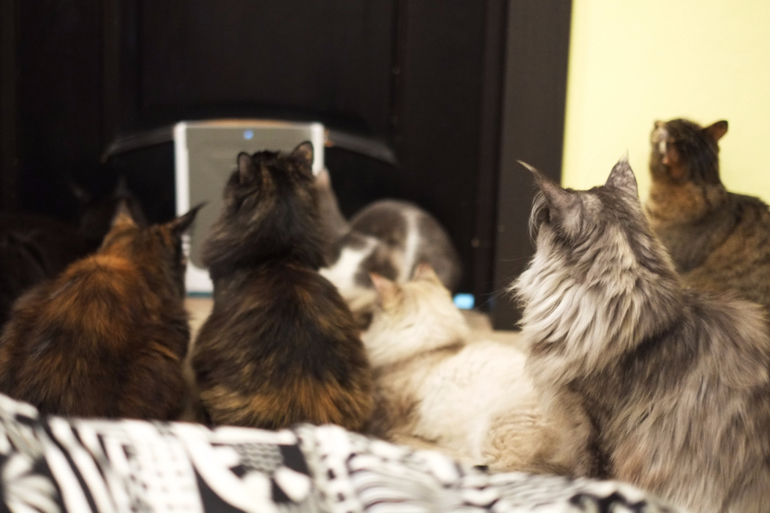 И мечта у него случилась, сходить к этим котикам. А они возьми, да и переедь с Садового, где их Вова нашел, на Маросейку...Вот мы их искали и ждали, и наконец нашли.