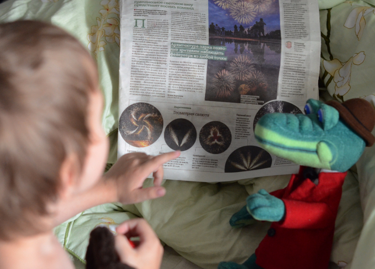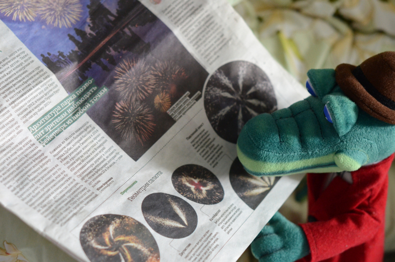 А еще , после того, как мы два вечера подряд смотрели на салюты, Вова нашел в метро (?) газету и сказал, что газеты тоже иногда читать интересно.