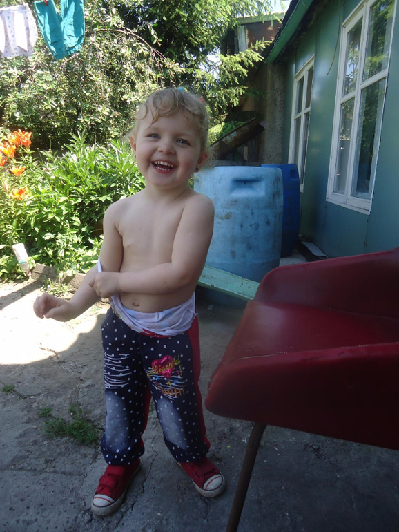 хулиганит Нюта в огороде,намочила себе волос стоит и ржет