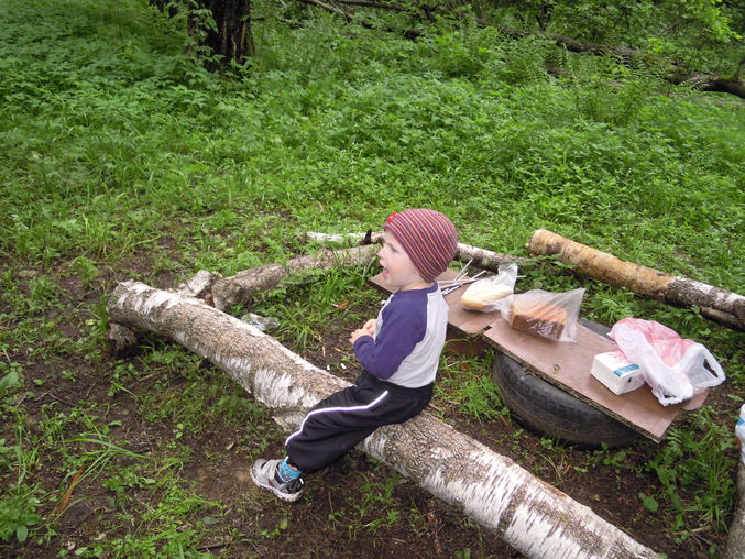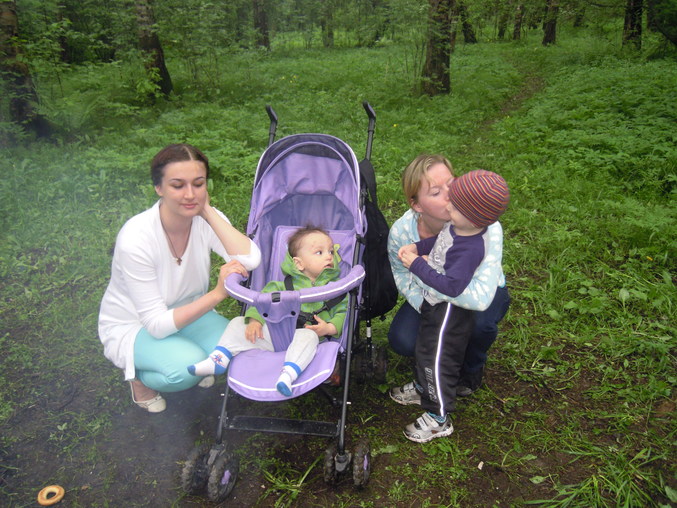 На выхордные ездили в посад к друзьям, целый день на свежем воздушке, а вечерком пошли в лес на шашлыки. Комаров просто море, но мы всю одежду обильно попрыскали противокамариным спреем, Димке даже шапку набрызгала, чтобы личико не кусали и в итоге у Димана ни одного укуса. Компания для Димки была чудесная, малыш 3 месяцев, мальчишка 10 месяцев и деваха 2 лет. Скучать не приходилось, засиделись в лесу аж до 10 вечера, Димка вырубился по пути домой в машине. И на следующий день дал нам поспать до 10 утра.