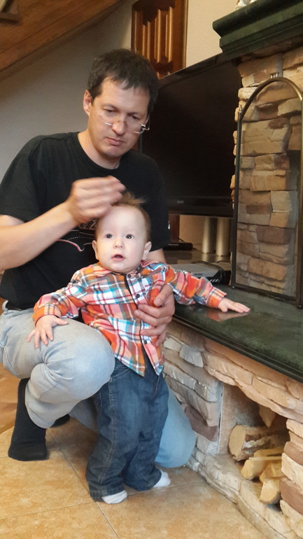 Что умеем, умеем сидеть, ползать, стоять и подниматься у опоры, чуть ходить держась за кроватку. Гоняем в ходунках, везде шмонькаемся, все очень интересно, кот, грязная обувь, пылесос. Когда он мне улыбается, сердце сжимается. У нас 3 зуба, 2 сверху, 1 снизу)))