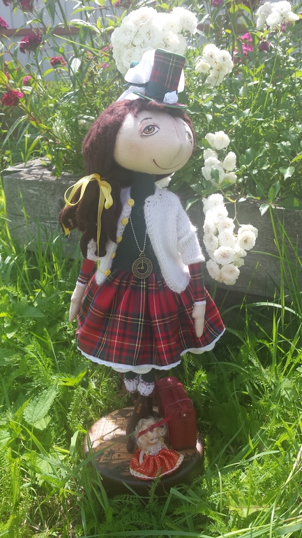 На подставке (ручная работа) + чемодан из натуральной кожи + керамическая кукла