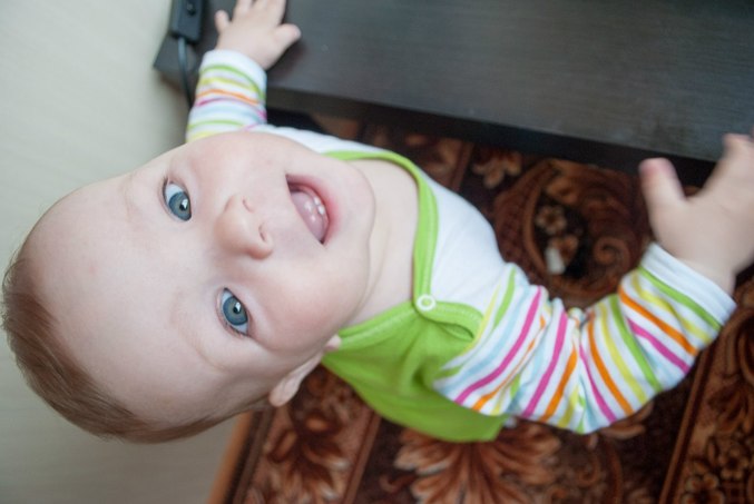 Малыш мой осваивает территорию, ползает по всей квартире, как только видит опору, сразу встает. Так что теперь регулярно бьется головой.