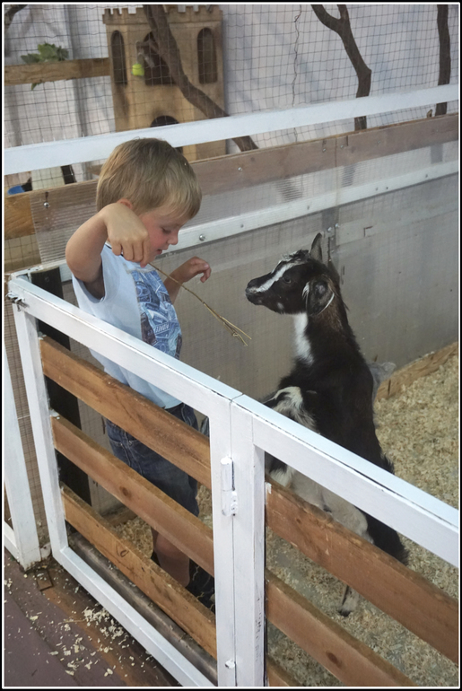 Серёжу более всего впечатлили ягнята и козлята, которые кормятся с бутылочки смесью! Хит сезона. Боже, какие ж они мягонькие и славные! Козлята чуть постарше, кушают и травку и молоко, играют с прутиком, радуются входящим в вольер людям, подходят за лаской. Прям как я, Господи.