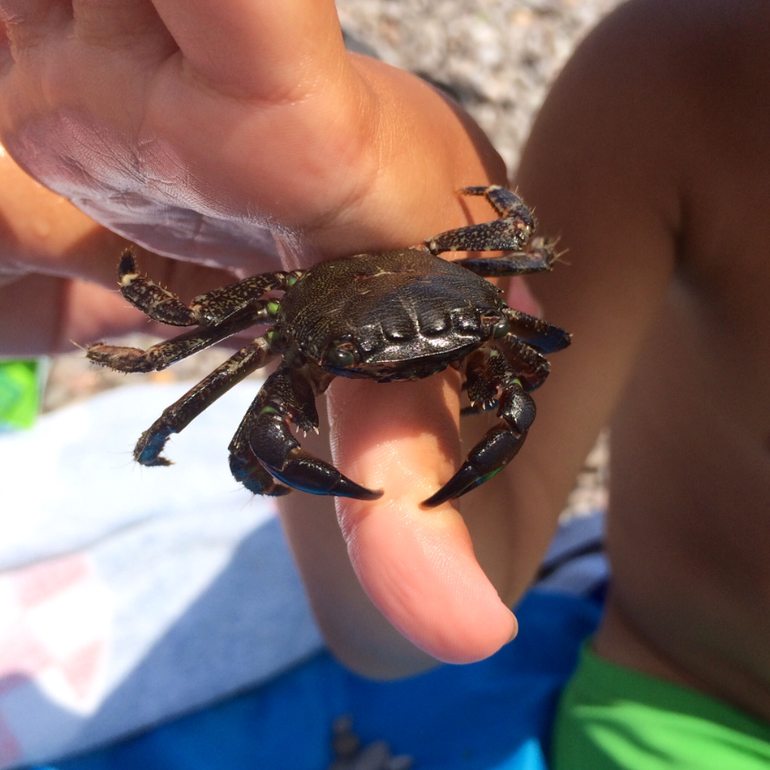 какой большой гриб вы нашли! Класс! А крабик какой классный:) И малыш просто чудо, смелый очень:)