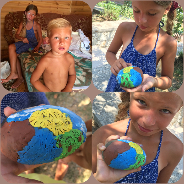 Последние 10-ть дней лета Крыма 20141⃣- утро началось с творчества. Камни не дают нам покоя )) краски ставили на пляже , нашила детям показать что можно и с пластилином что- то сделать и затянуло это нас на долго... В итоге налепились так, что пластилин на пляж не взяли..