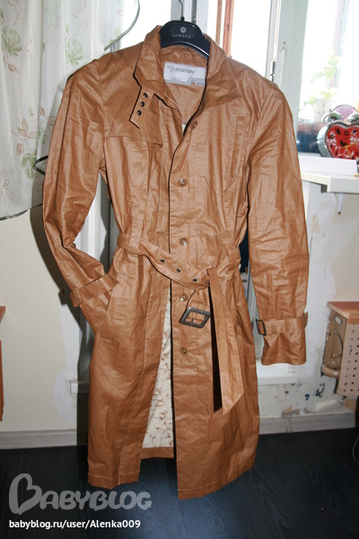 Фирма BAON. Цвет горчица. Рзмер 44/46. Фото не очень, быстренько сфоткала, кому понравится перефоткаю. Плащ правда интересный, рискнула купить, но носить не знаю с чем, ни разу не надела. (этикеток нет).