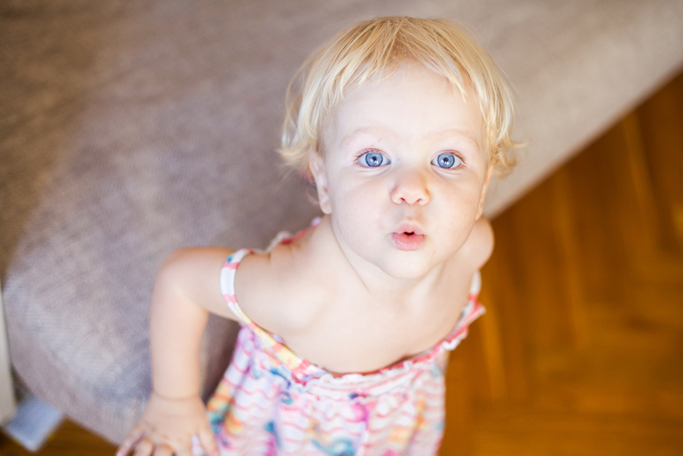 * еда: ест сама, любит каши, овощи, фрукты. Не терпит слюнявчиков, так что ест всегда голая )), пьет исключительно воду и иногда сок. Сладкого не ест ничего вообще, кроме творожков Избенка с добавками (любит с яблоком и тыквой), в каши добавляю фруктозу.