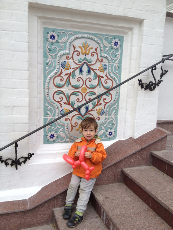 Медвежонок выучил, что такое изразцы, и как их делают, а также, что купола у церквей бывают разные: луковица, шлем и шатер. К следующей поездке надо сделать для него искалку по архитектурным элементам, раз заинтересовался.