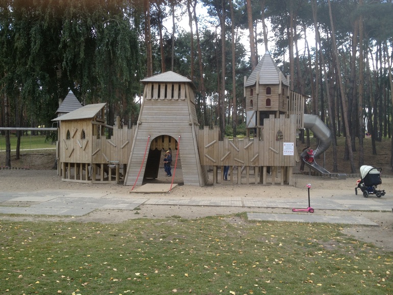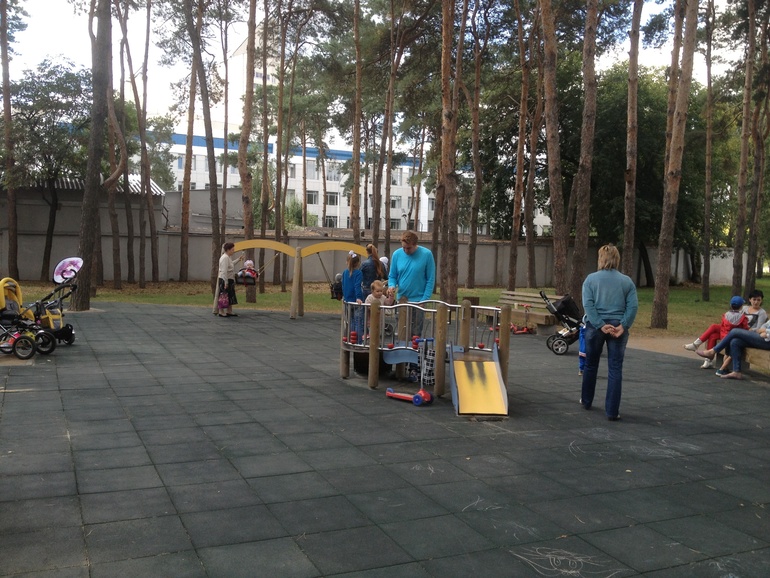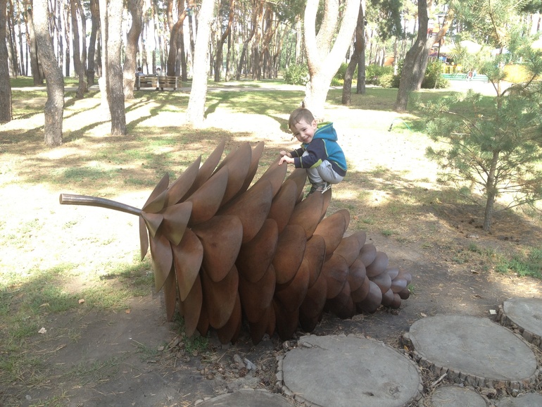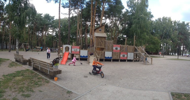 Парк чудесный. Кусок соснового леса на берегу реки. Отличные детские площадки и даже аналог панда-парка с малышовым маршрутом.