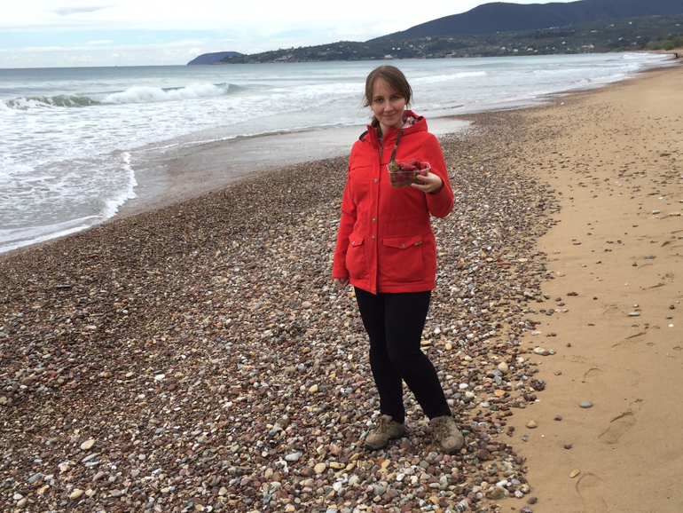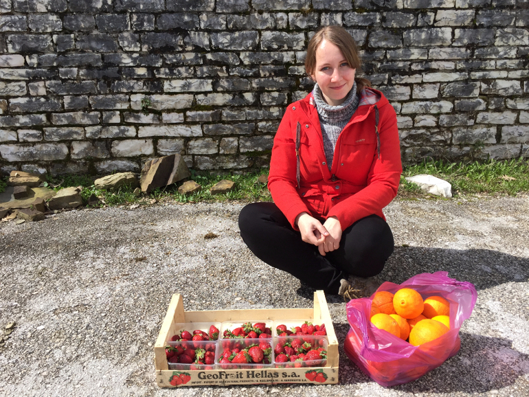 Пока ехали с Пелопоннеса на север, купили у стоящих вдоль дороги бабулек фермерскую клубнику и мешок апельсинов (10 кг 2 евро). Люблю Грецию!:) И нет, на фото я их не продаю, я их ем :)