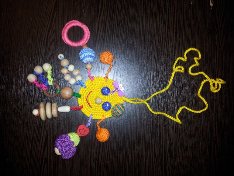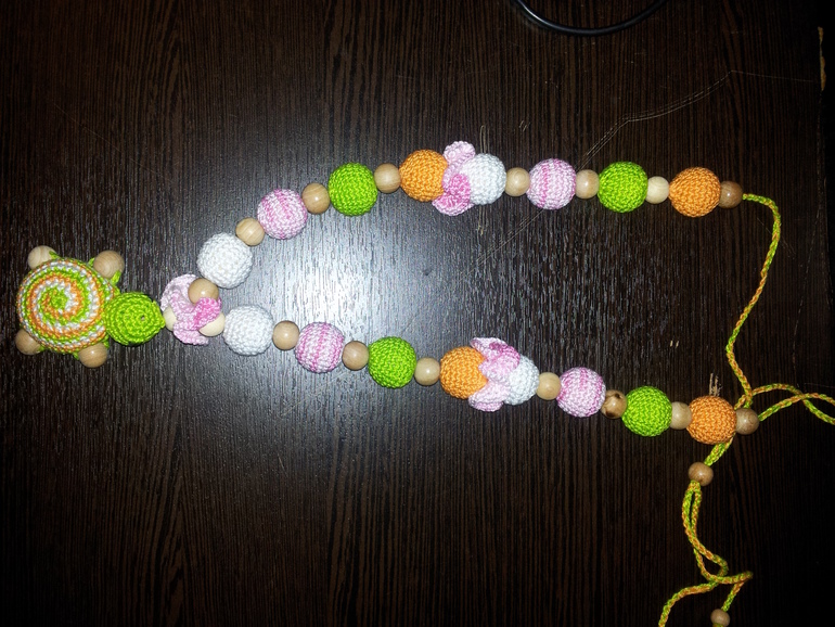 Надо пианино тоже присмотреть, еще мячик посмотрю и с куклой идея хорошая!!! А у нас вот такие игрушки из можжевеловых бусинок