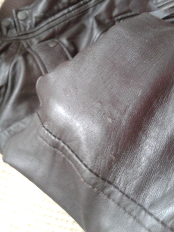 У Даши я купила кожаную куртку ZARA. По ее словам куртка была одета пару раз и продает она ее из-за загруженности гардероба. Мало того, что куртка мне мала. Это фигня. Куртка активно ношена. Подклада вся поползла по швам. На самой коже имеются следы носки, кожа в некоторых местах порвана и пошоркана.