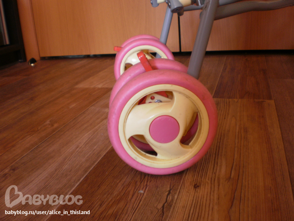 Но она не подходит для постоянного использования, т.к мягкая спинка, пластиковые колёса (погремушки), и высота ручек удобна мамам до 165 см ростом.