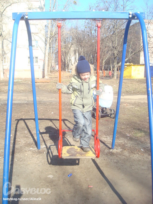 Потом качелю. Уронил машинку под качелей. Чуть не прибило его, когда доставал)