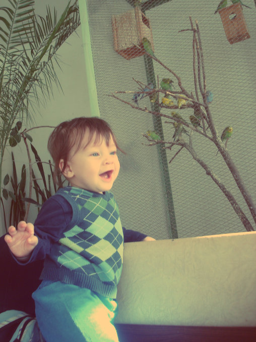 Говорит "мама" и "папа", не умеет долго находиться на одном месте, очень быстро ползает, несколько секунд ловит равновесие, делает "пока-пока" и везде следует за Ромкой, а я у него на втором месте. Ну, и, конечно, он очарователен!