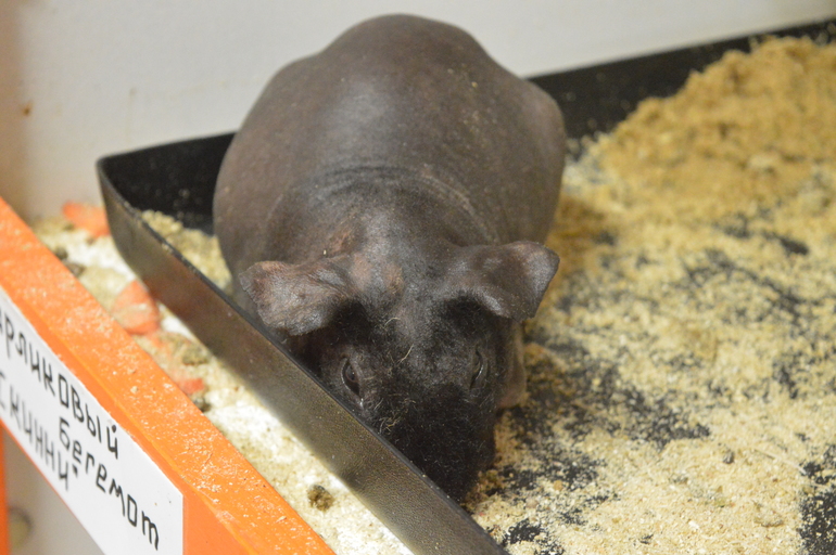Взяли и сестру, и мужа - в общем вся семья в сборе:) Ну всем без исключения, конечно, понравилась коза Настя - это прям не коза, а собака какая-то, за хозяевами выставки ходит как верный пес, а счастья то ей сколько, когда выпускают из вольера... А у мужа фаворит - морская свинка "Бегемот". Посмеялись, прикольная:)