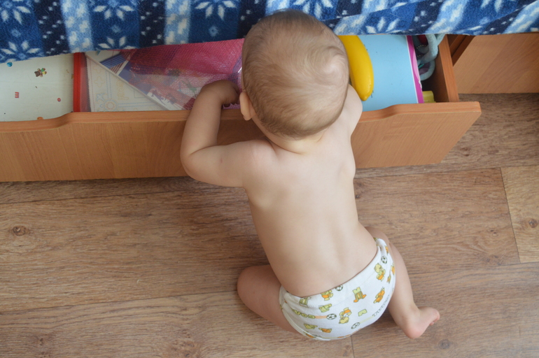 Что умеем? С 7 месяцев стали постоянно вставать у опоры. В кровати, на диване, облокотившись на маму, папу, сестру... Мы действуем на ребенка волшебно - как только ложимся на диван, Славушка быстро-быстро доползает до нас, подтягивается и встает - и так постоянно. Бросает все игрушки и вперед, к новым достижениям:)