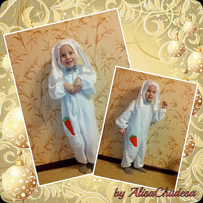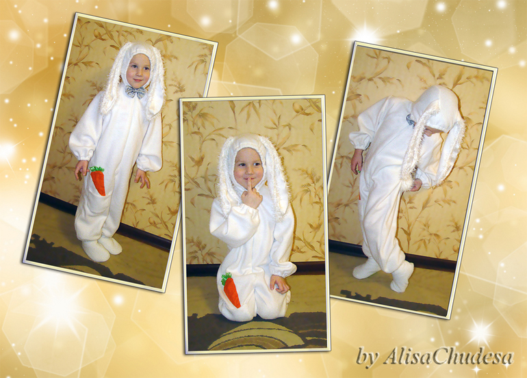 комбез из флиса, ушки 2х сторонние (флис и атлас), морковка хлопок,хвостики морковки ииз атласных лент. Бабочка от костюма. выкройка комбеза с одного хорошего .
