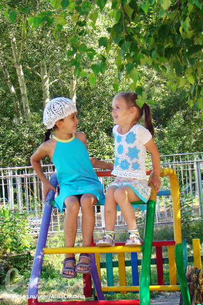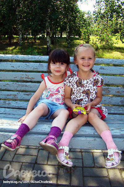 Какая? Первое фото это подружка во дворе, а вот в обнимку на лавочке это сестренка двоюродная, самая самая подружка, дружат с пеленок, с разницей в полгода, настока Алиска старше.