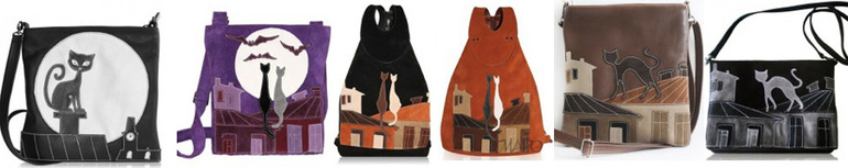 На представленных фото, Вы также можете увидеть сумки с сюжетом "Кот на крыше" в разном цветовом исполнении.