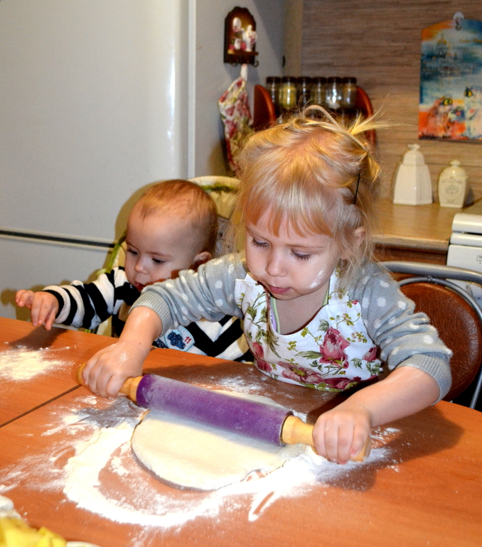 И скажу вам,это было верное решение-30 минут мы дружно"играли"мукой и тестом))))))))))