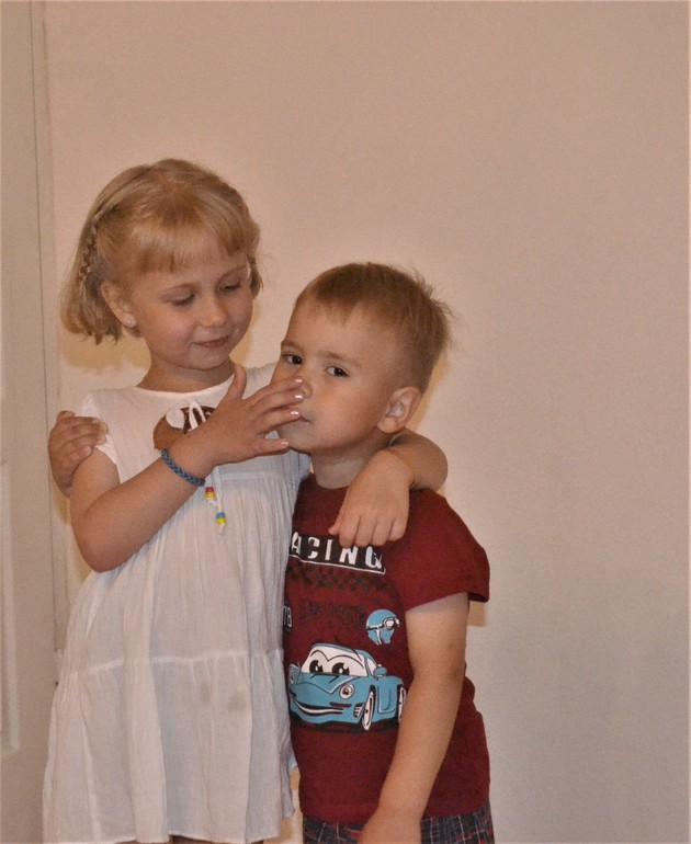 Между собой дети стали много играть.Аленка придумывает игры,Кирилл их поддерживает.