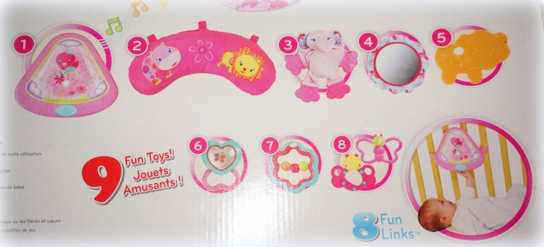 2. свето-музыкальный блок на липучках (время непрерывного звучания - 20мин, можно крепить к кроватке/шезлонгу/коляске /автокреслу)