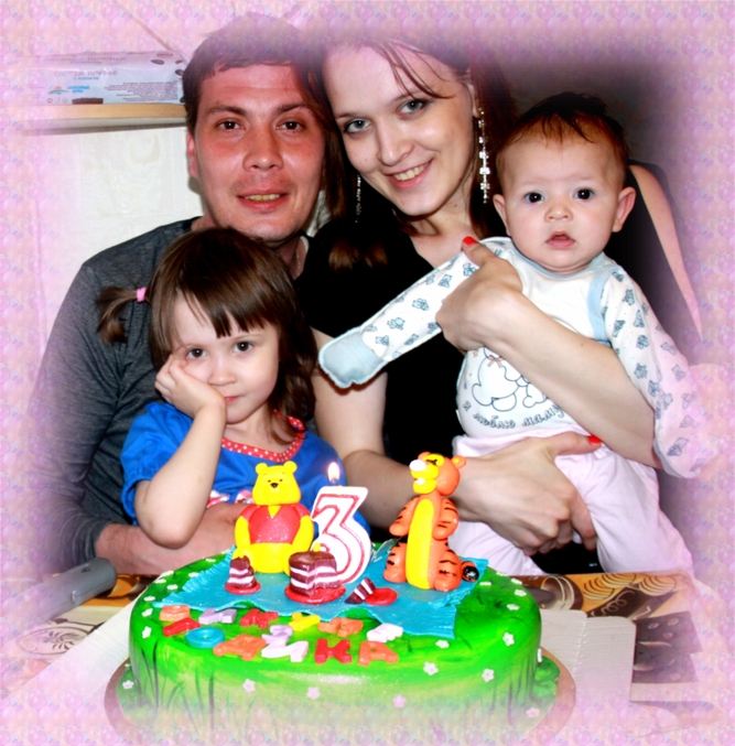 А вот собственно наша теперь полноценная семья)))) малышке Ксюне исполнилось 3 мес а старшей 3 годика))))Посидели очень хорошо)