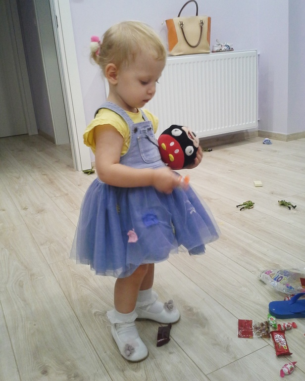 Вся она такая девочка-девочка, играет в куклы, качает их, катает на коляске. Последние пару дней требует кормить её пупсов и зайцев, теперь ложку зайцу, ложку Лене. Полюбила строить из Лего, может и машинки брата покатать. Раскрашивает водой специальную раскраску, где от воды краска проявляется, старается делать всё аккуратно. Кушать всё чаще требует самостоятельно, тоже уже неплохо получается. Обязательно вытирает рот салфеткой во время и после еды. Леди!