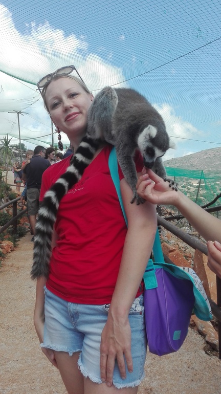 А в минувшее воскресенье ездили в Зоопарк. Довольно дорогой вход, 10 Евро со взрослых и 6 с детей от 3 до 16, Лена была единственная бесплатная). Огромная ухоженная территория, тропические бабочки, черепахи, разные виды обезьян, попугаев, и под конец лемуры! Тааакие они классные, мягкие, тискабельные! хочу домой одного такого!)))