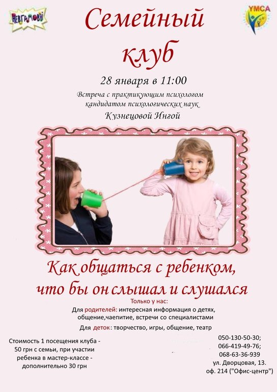 О работеХочу еще раз рассказать о нашем "Семейном клубе" - проекте для мам Кировограда, который существует уже почти год. Прежде всего, "Семейный клуб" - это тусовка для мам и для деток. Для мам - это возможность отдохнуть от домашних дел, поговорить о чем-то важном для себя, познакомиться с новыми людьми. Ну и, конечно, усовершенствовать свое родительское мастерство. Для деток - это место, где можно поиграть, найти друзей, открыть что-то новое. Маленькие детки (лет до 2-3) обычно играют рядом с мамами, детки постарше играют вместе в соседней комнате. Правда, наши постоянные тусовщики, полуторагодовалые Влада и Клим, чувствуют себя в клубе, как дома, и спокойно остаются в соседней комнате, когда их мамы общаются и пьют кофе с печеньем. На каждом заседании "Семейного клуба", которое проходит раз в 2 недели, мы обычно обсуждаем какую-то важную для родителей тему. Я с радостью делюсь тем, что знаю, но и часто бывает так, что какое-то важное слово, сказанное родителями, западает глубоко в душу. В общем, это обмен - опытом, мнениями,знаниями и просто общение. В эту субботу ,например, мы будем говорить на тему общения