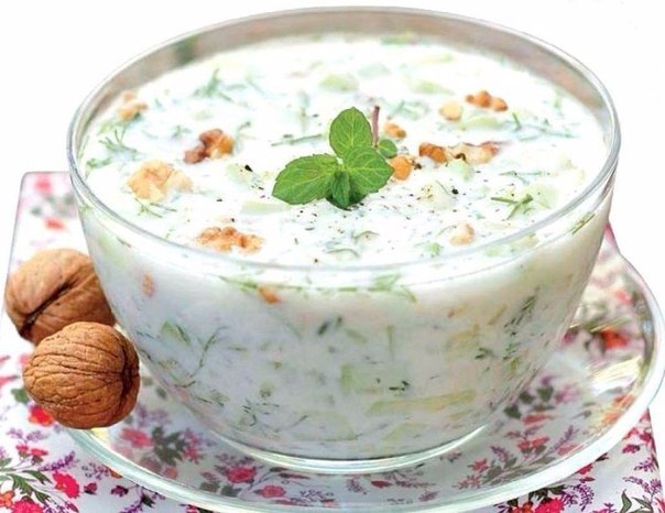 5. Овощи перемешать, посолить, залить кефиром. Приправить черным перцем и раздавленным в чеснокодавке чесноком.