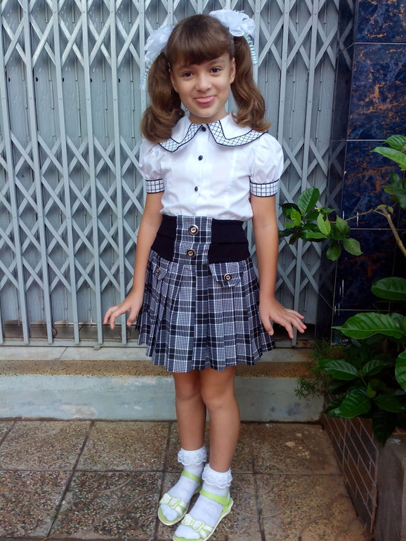 Куколка моя))) Лишает меня удовольствия наряжать себя в школу. Сама выбирает себе одежду и банты.