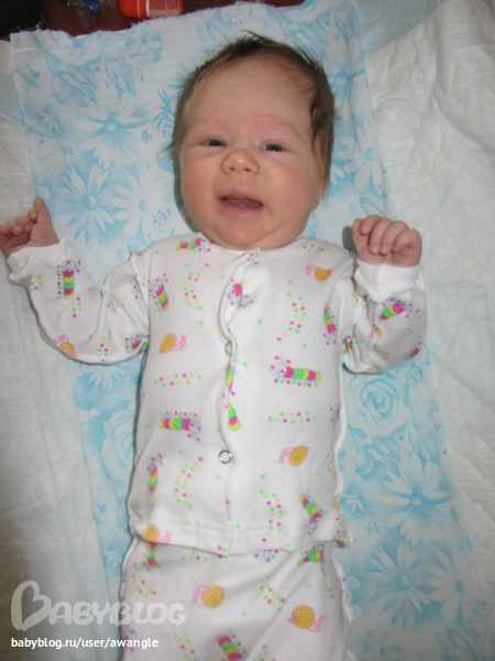 и постоянно улыбается!!!! всегда!! вобще плачет исключительно по делу: хочу есть, что-то болит, устал и хочу спать