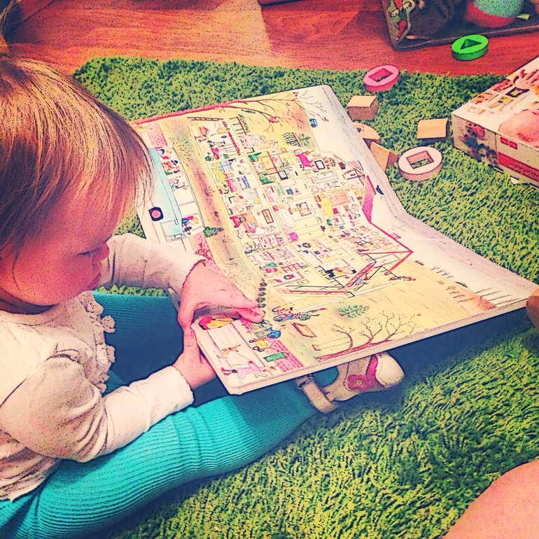 Наступили холода. В такую погоду хочется забраться под одеяло с чем-нибудь горячем. Но когда у тебя годовалая дочь-непоседа о покои можно только мечтать. Время на прогулке сократилось и дома развлекаю как могу. Нам очень понравилась новая книга из серии вимельбух. Можно спокойно посидеть и полистать. А на ночь мы читаем Корнея Чуковского.