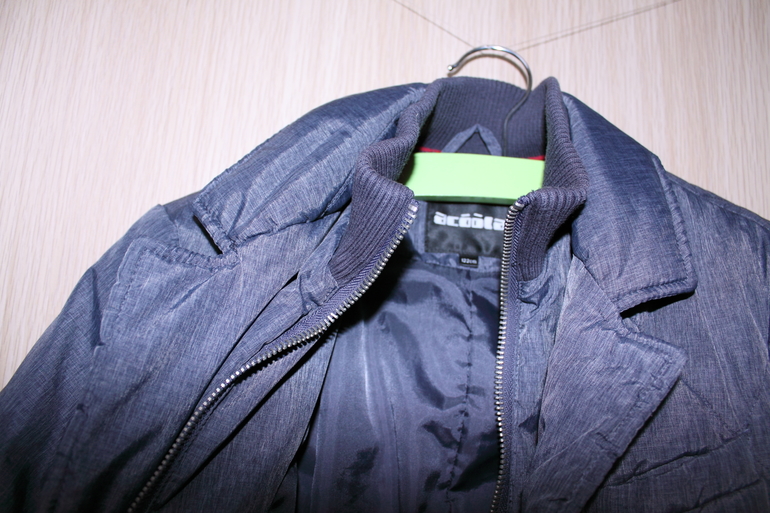 мембрана, сколько утеплителя не помню, но мы такую носили зимой до -20 на прогулки.