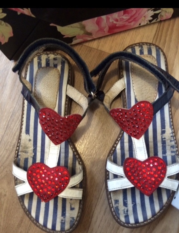 33р., 750руб.., пакет, коробка, все стразы на месте, липучки в отличном состоянии, потёрта только подошва. Москва, почта.