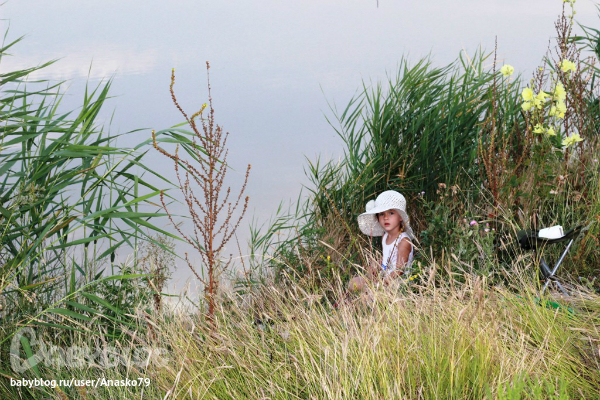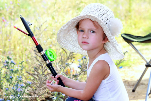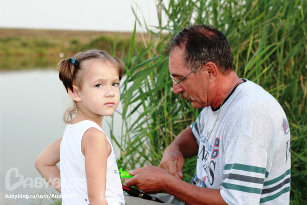 Вчера ездили на рыбалку :)) Аришка выдержала стойко 5 часов рыбалки и щеголяла в презентованой дедом шляпе ретро :)) Поймала 3 рыбки на свою собственную удочку :))