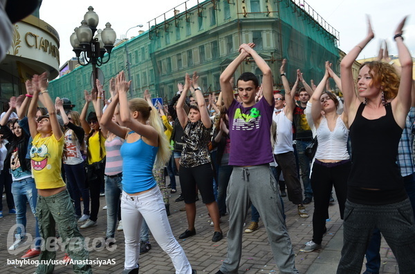 Единственное, лучше бы это все проходило например в парке Горького, потому что на Арбате место мало, мы даже не рискнули иди в толпу, а посмотрели это все с краю.